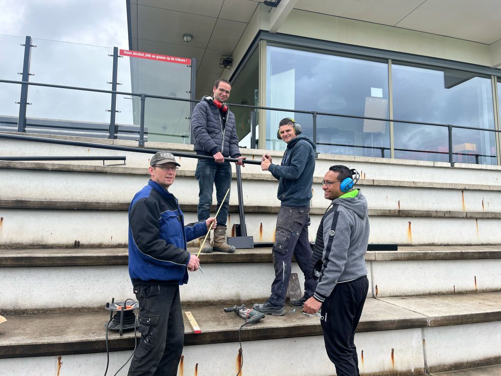 Na een mooi initiatief van een groep HZVV supporters zijn na de werkzaamheden “op“ ons clubgebouw, nu ook de vrijwilligers vóór de kantine begonnen. Eén vak wat de kantine en het gebruik daarvan dichter bij “het veld“ zou brengen was de vraag. En dat wordt het “sfeervak“. Hier kan men al dan niet met versnapering de wedstrijd volgen, het vak voldoet straks aan de eisen om met drinken in plastic bekers onze spelers aan te moedigen.